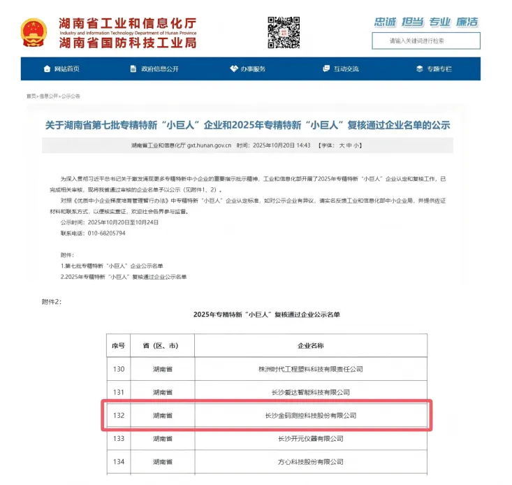 В октябре 2025 года Министерство промышленности и информационных технологий завершило процесс проверки предприятий «Маленького гиганта» 2025 года по классификации «Специализированные, усовершенствованные, дифференцированные и инновационные» и официально опубликовало список. Kingmach Measurement & Monitoring Technology Co., Ltd успешно прошла строгую проверку и вернула себе эту награду национального уровня благодаря своим постоянным инновационным возможностям, профессиональной технической мощи и стабильной работе на рынке.