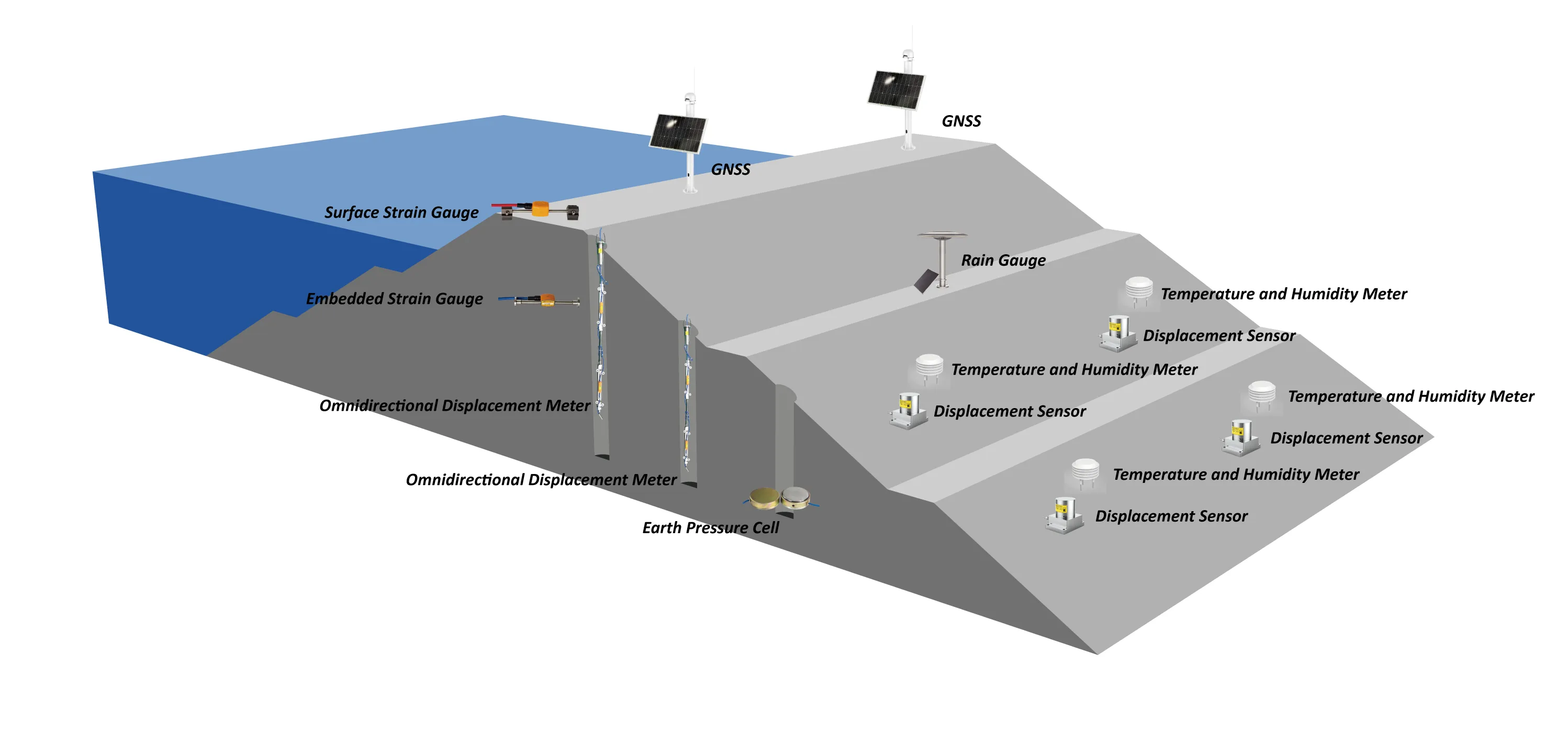 Автоматический мониторинг плотины — это техническая система, которая использует сенсорные устройства и системы удаленных данных, развернутые на теле плотины, основании плотины и прилегающих территориях, для постоянного мониторинга структурного состояния, условий просачивания и эксплуатационной безопасности плотины под воздействием давления воды, геологических движений и природной среды. Эта система помогает предупреждать о таких рисках, как деформация плотины и просачивание, тем самым обеспечивая безопасную работу функций водохранилища, включая борьбу с наводнениями, выработку электроэнергии и водоснабжение. Его суть заключается в выявлении динамического взаимодействия между «телом плотины, водным телом и геологией» и создании сети мониторинга безопасности, охватывающей весь объем тела плотины.